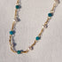 Ce bracelet mesure 17 cm et comprend une rallonge de 3 cm pour un ajustement parfait. Il est composé de perles d’eau douce et de perles à facettes de 4 mm en apatite bleue, montées directement sur une chaîne dorée en acier inoxydable. Fabriqué à la main par Houria, ce bracelet allie finesse, fraîcheur et éclat. Parfait pour illuminer le poignet avec subtilité, il se porte seul ou en accumulation avec d’autres bracelets raffinés.